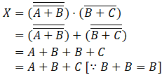 (গ) চিত্র- এর লজিক সার্কিট থেকে প্রাপ্ত X আউটপুটের সরলীকৃত মান নিম্নরূপ-