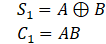 প্রথম হাফ অ্যাডারের ইনপুট A B এর যোগফল S1  এবং ক্যারি Ci