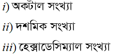 বিভিন্ন ধরনের সংখ্যা পদ্ধতি হলো-