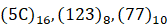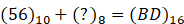 A=(52)10 B=(103)8 C=(A25.6C)16