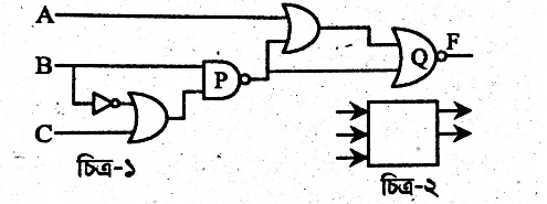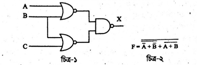 আইসিটি বিষয়ের শিক্ষক ক্লাসে চিত্র- প্রদর্শিত লজিক সার্কিটটি বিশ্লেষণ করে ছাত্রদেরকে চিত্র- এর সিগনালগুলোকে ইনপুট হিসেবে ব্যবহার করে সত্যক সারণি তৈরি করতে এবং ছাত্রীদেরকে শুধু NOR গেইট ব্যবহার করে চিত্র- এর একটি সমতুল্য সার্কিট তৈরি করতে বললেন​​​​​​​