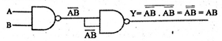 AND গেইট বাস্তবায়ন : দুইটি NAND গেইট সংযোগে একটি AND গেইট তৈরি হয়