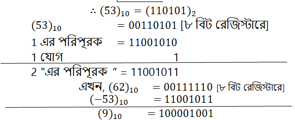 যোগফলের নবম বিটে 1 অঙ্কটি ওভারফ্লো হিসাবে চলে এসেছে তাই সেটি বিবেচনা করা হবে না