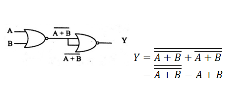 () NOR গেইট দ্বারা OR গেইট বাস্তবায়ন কৌশল নিচে ব্যাখ্যা করা হলোদুটি NOR গেইটের সংযোগে একটি OR গেইট তৈরি হয়