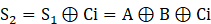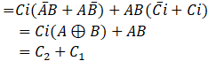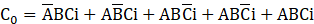 তিনটি ইনপুট A,B Ci এর ক্ষেত্রে ফুল অ্যাডারের সত্যক সারণি থেকে লেখা যায় যে,