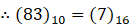 নম্বরটিকে হেক্সাডেসিমালে নিচে রূপান্তর করা হলো-